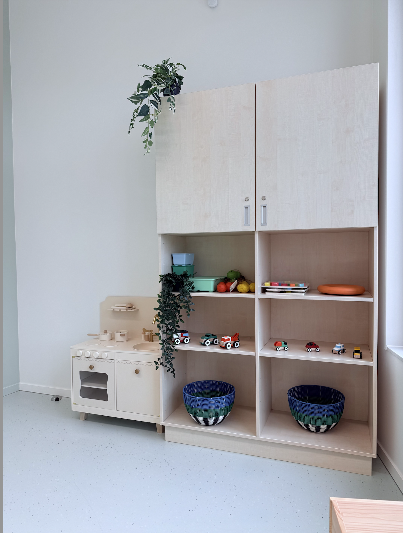 Er is één groepsruimte voor kinderen van de peuteropvang. De groepsruimte is gezellig en huiselijk met speciaal ingerichte hoekjes waar de kinderen kunnen spelen, ontdekken en even lekker een puzzel kunnen maken. Of samen met de medewerker even een boekje kunnen lezen. Er is 1 pedagogisch professional per 8 kinderen aanwezig.